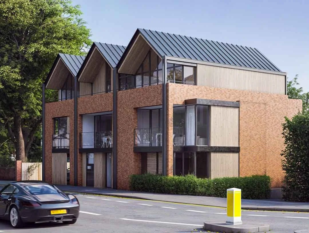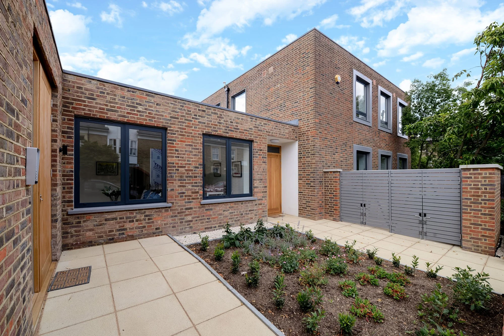 Derby RoadLondon E9 Derwent Walk is a collection of five hand-built mews houses in the heart of East London. The houses have been designed by award winning architects OWAL to a high standard and are built in traditional London stock bricks, high performance timber windows to upper floors and skylights, and are accessed from a landscaped, cobbled walkway leading from Derby Road.